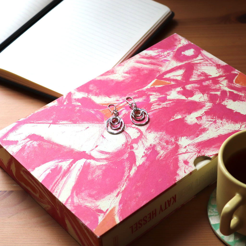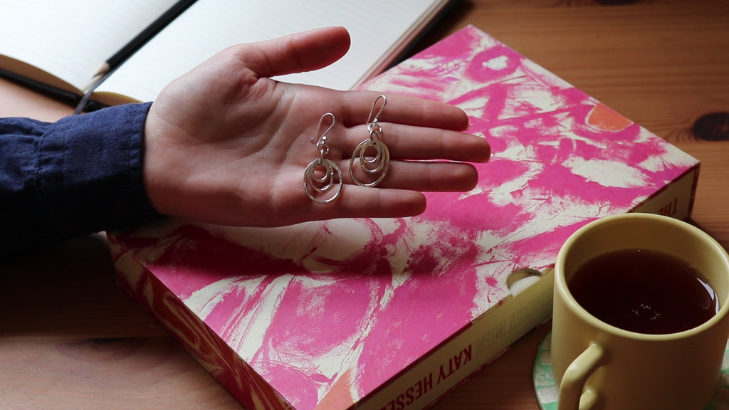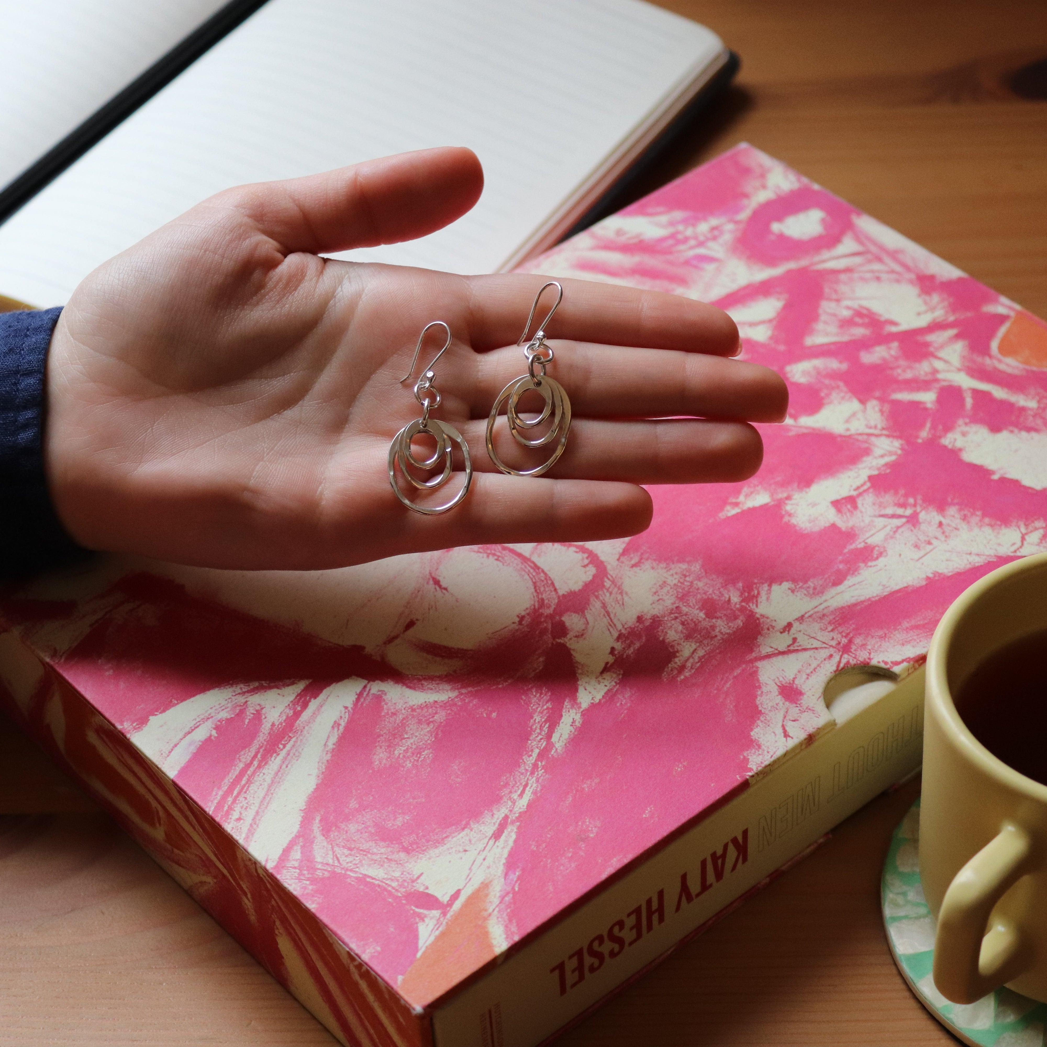Lovely handmade sterling silver earrings which twist and turn as you move, and are designed with three polished silver hoops with a hammered finish. Great quality and the perfect jewellery gift for someone who likes bold but elegant silver earrings.