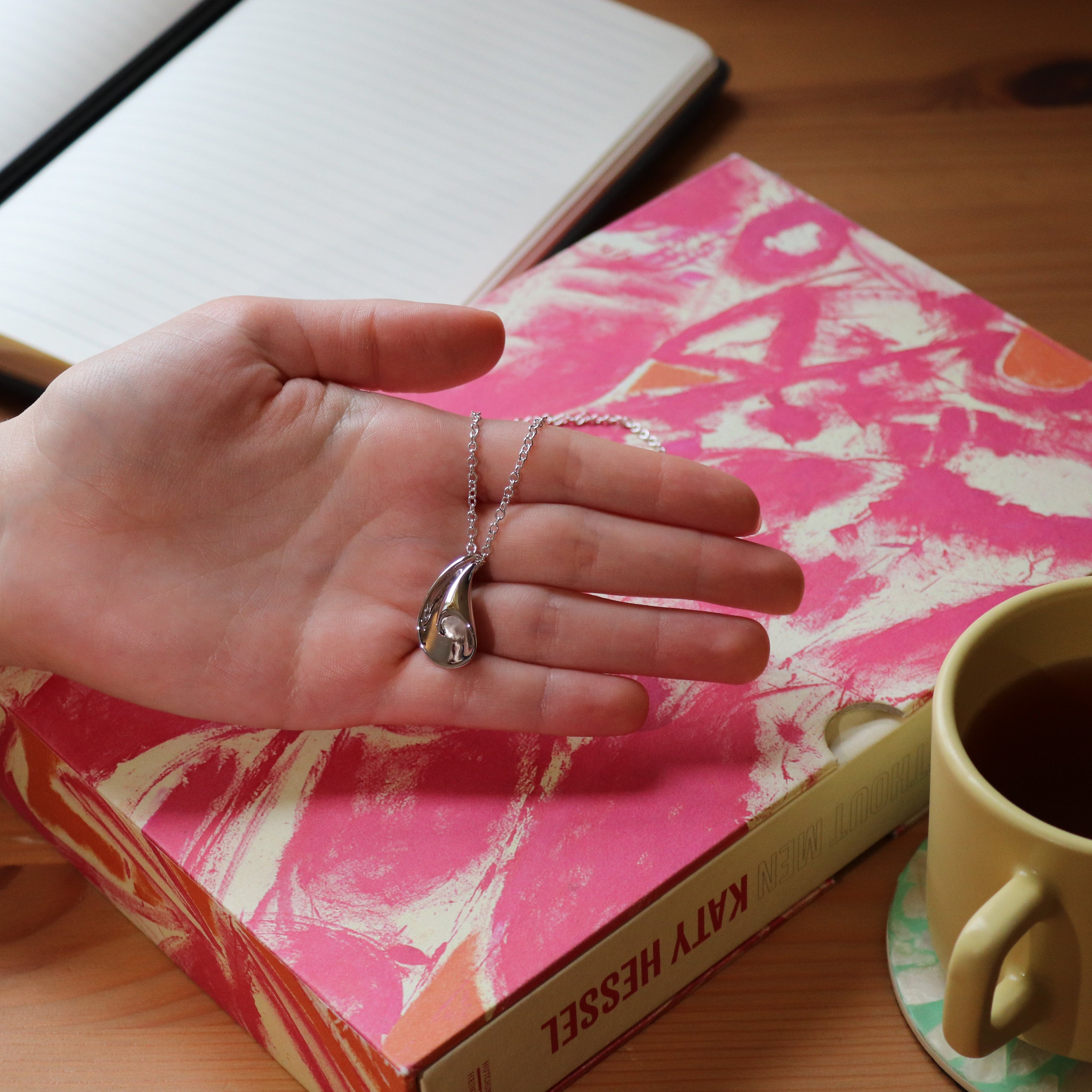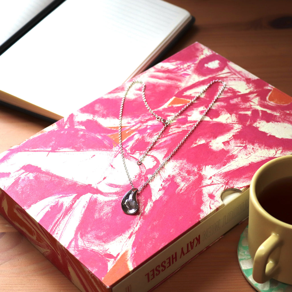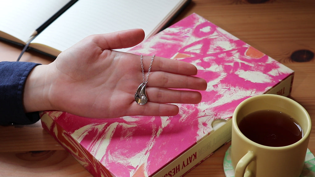This contemporary sterling silver pendant is handmade with an elegant design reminiscent of a delicately folded curl or shell. It gracefully curves and folds, evoking the organic beauty of natural forms